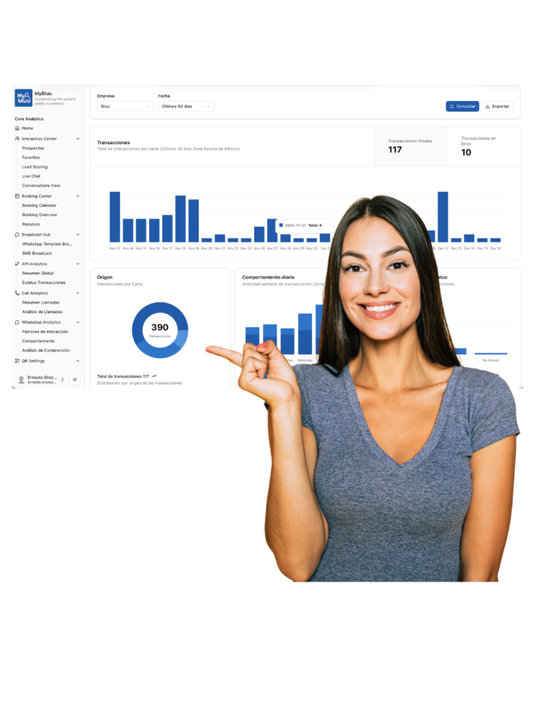 Con nuestras gráficas de monitoreo, podrás observar y analizar el comportamiento de tus clientes a través de WhatsApp en tiempo real. Identifica tendencias, ajusta tu enfoque y toma decisiones más informadas para optimizar tu proceso y alcanzar tus objetivos.